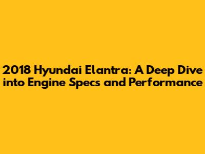 2018 Hyundai Elantra: Engine Specs & Performance Guide
