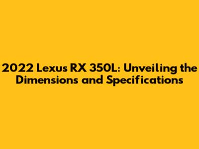 - What are the key dimensions of the 2022 Lexus RX 350L? The 2022 Lexus RX 350L typically measures around 196.9 inches in length, 74.6 inches in width, and 67.3 inches in height, with a wheelbase of about 110.6 inches.