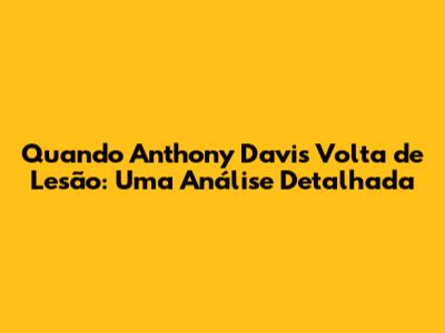 Olá, pessoal! Se vocês são fãs de basquete e, em particular, do astro Anthony Davis, certamente estão curiosos para saber: quando Anthony Davis volta de lesão? Afinal, a ausência de um jogador como ele, que tem um impacto tão grande no jogo, faz toda a diferença para o time. Neste artigo, vamos mergulhar nas últimas notícias sobre a lesão de Anthony Davis, analisar o histórico de recuperação de lesões semelhantes e tentar prever quando o craque estará de volta às quadras. Vamos lá?