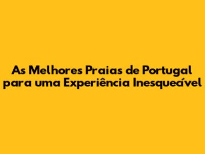 As Melhores Praias De Portugal Para Uma Experiência Inesquecível