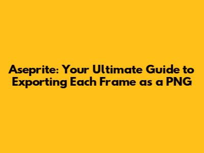 Hey there, fellow pixel artists! Ever found yourself knee-deep in a stunning Aseprite animation and then realized you needed each frame as a separate PNG? Don't sweat it, because exporting individual frames from Aseprite is super straightforward. This guide will walk you through the entire process, making it a breeze for both beginners and seasoned pixel pushers. We will cover all the steps, from the basic export options to some handy tips and tricks to make your workflow even smoother. So, let's dive in and get those frames exported!