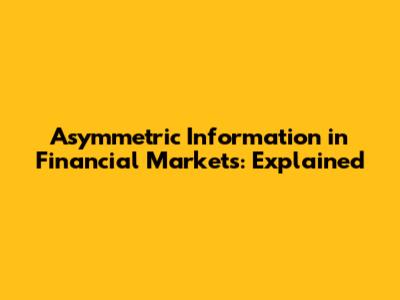 Asymmetric Information In Financial Markets: Explained