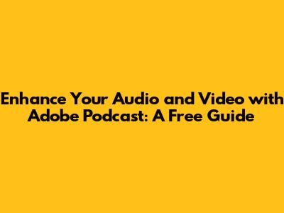 Hey guys! Are you looking to level up your audio and video game? Maybe you're a budding podcaster, a video creator, or just someone who wants their recordings to sound professional. Well, you're in luck! Adobe Podcast, a fantastic tool from Adobe, offers some amazing features to enhance your audio, and the best part is, some of them are completely free! In this article, we'll dive deep into what Adobe Podcast is, how you can use it, especially the free features, and how it can transform your audio and video quality. Get ready to say goodbye to muffled voices and background noise and hello to crystal-clear sound! It's super easy to use, even if you're a beginner, and the results are often mind-blowing. Let's get started and see how Adobe Podcast can help you achieve professional-sounding audio and video, without breaking the bank!
