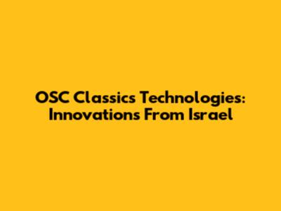 OSC Classics Technologies: Innovations From Israel