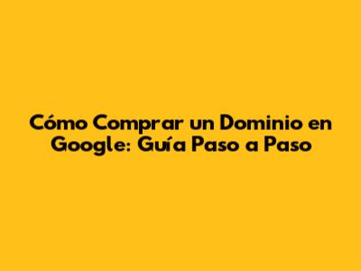 Cómo Comprar Un Dominio En Google: Guía Paso A Paso