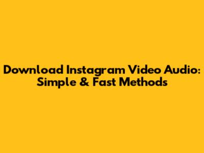 Download Instagram Video Audio: Simple & Fast Methods