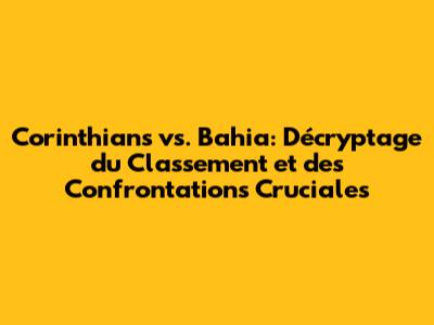 Décortiquons le Classement Corinthians EC Bahia : Où en Sont-ils ?