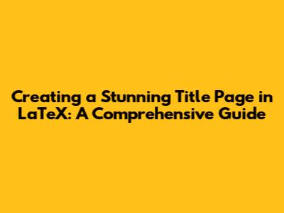 Hey guys! Ever wondered how to create a killer title page in LaTeX? You've come to the right place! Crafting a perfect title page in LaTeX might seem daunting at first, but trust me, it's totally manageable. Let's dive into the nitty-gritty of creating visually appealing and informative title pages that will impress your readers. We'll cover everything from the basics to some cool customization tricks. So, grab your coffee, and let's get started!