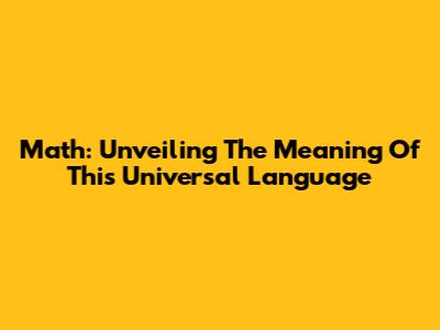 Math: Unveiling The Meaning Of This Universal Language