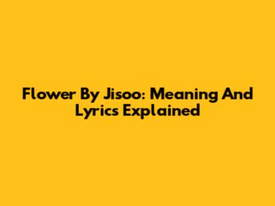 Flower By Jisoo: Meaning And Lyrics Explained