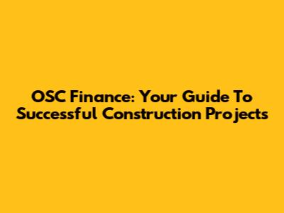OSC Finance: Your Guide To Successful Construction Projects