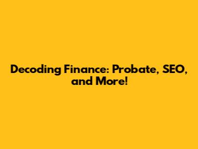 Hey guys! Ever feel like the world of finance is speaking a different language? You're not alone! Today, we're diving into some key areas that often get tangled up: probate, SEO (yes, that's Search Engine Optimization!), and general finance. Let's break it down in a way that's actually understandable and maybe even a little fun. Forget the jargon; we're keeping it real.