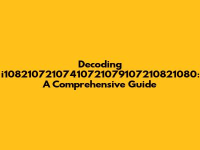 And hey, if you ever do figure out exactly what i10821072107410721079107210821080 truly means, be sure to let us know! We're always up for a good decoding challenge.