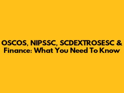 OSCOS, NIPSSC, SCDEXTROSESC & Finance: What You Need To Know