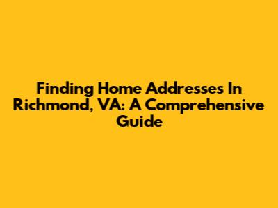 Finding Home Addresses In Richmond, VA: A Comprehensive Guide