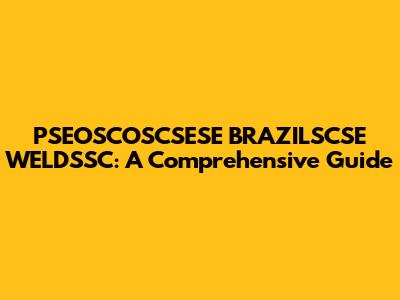 PSEOSCOSCSESE BRAZILSCSE WELDSSC: A Comprehensive Guide