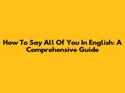How To Say "All Of You" In English: A Comprehensive Guide