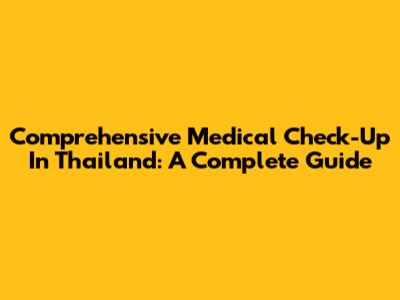 Comprehensive Medical Check-Up In Thailand: A Complete Guide