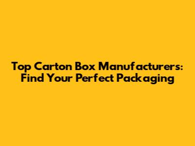 Top Carton Box Manufacturers: Find Your Perfect Packaging