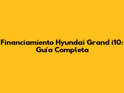 Financiamiento Hyundai Grand I10: Guía Completa