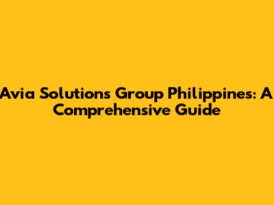 Avia Solutions Group Philippines: A Comprehensive Guide