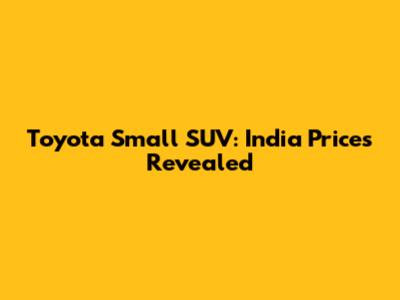 Toyota Small SUV: India Prices Revealed