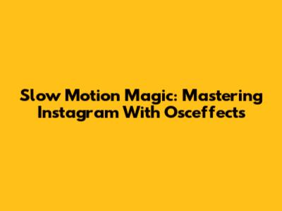 Slow Motion Magic: Mastering Instagram With Osceffects
