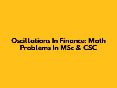 Oscillations In Finance: Math Problems In MSc & CSC