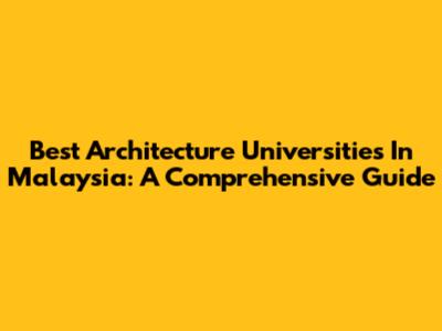 Best Architecture Universities In Malaysia: A Comprehensive Guide