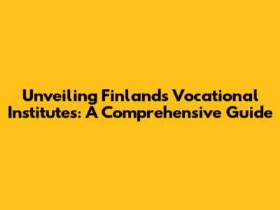 Unveiling Finland's Vocational Institutes: A Comprehensive Guide