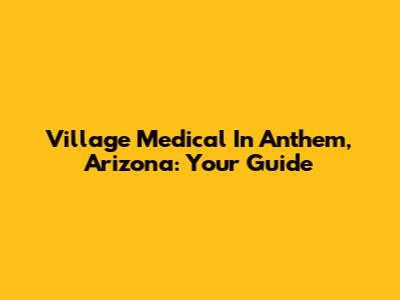 Village Medical In Anthem, Arizona: Your Guide