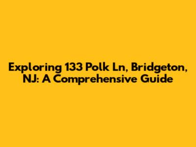 Exploring 133 Polk Ln, Bridgeton, NJ: A Comprehensive Guide