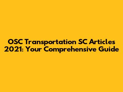 OSC Transportation SC Articles 2021: Your Comprehensive Guide