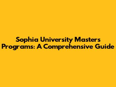 Sophia University Masters Programs: A Comprehensive Guide