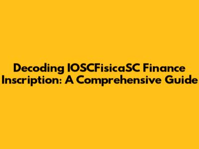 Decoding IOSCFisicaSC Finance Inscription: A Comprehensive Guide