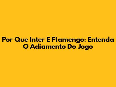 Por Que Inter E Flamengo: Entenda O Adiamento Do Jogo