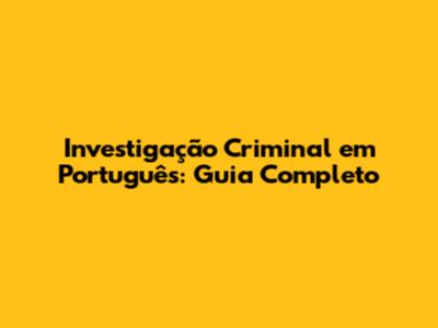 Investigação Criminal Em Português: Guia Completo