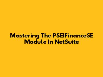 Mastering The PSEIFinanceSE Module In NetSuite
