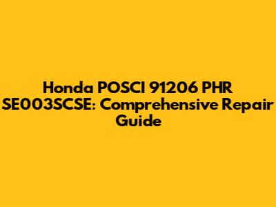 Honda POSCI 91206 PHR SE003SCSE: Comprehensive Repair Guide