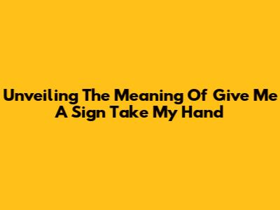 Unveiling The Meaning Of "Give Me A Sign" Take My Hand