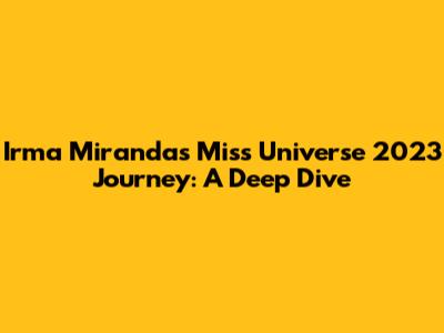Hey everyone, let's dive into the dazzling world of Irma Miranda's Miss Universe 2023 journey! This wasn't just a competition; it was a rollercoaster of emotions, hard work, and representing a nation on a global stage. Irma, with her radiant smile and captivating personality, captured the hearts of many, and her participation is a story worth exploring. From her early life and aspirations to the final moments on the Miss Universe stage, we'll uncover the key moments, challenges, and triumphs that shaped her unforgettable experience. Let's get started!