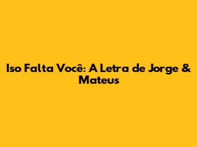 E aí, galera! Vocês pediram e a gente trouxe a letra completa de "Iso Falta Você", um dos grandes sucessos da dupla Jorge & Mateus. Essa música, que fala sobre a saudade e a falta que uma pessoa especial faz, conquistou o coração de muita gente e se tornou um hino para os apaixonados. Então, se preparem para cantar junto e matar essa saudade musical!