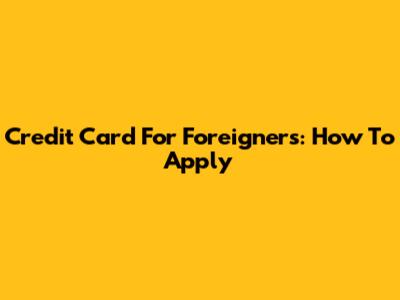 Credit Card For Foreigners: How To Apply