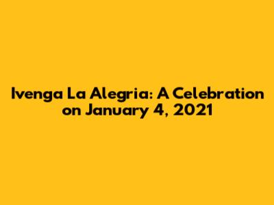 Let's dive into the vibrant celebration of Ivenga La Alegria that took place on January 4, 2021. This event, known for its joyous atmosphere and cultural significance, brought people together in a spirit of unity and festivity. In this article, we'll explore what made Ivenga La Alegria so special, its traditions, and its impact on the community. Whether you're a seasoned enthusiast or new to the celebration, get ready to immerse yourself in the excitement and learn about the unique aspects of this memorable day.