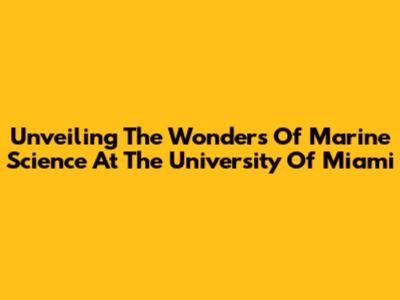 Unveiling The Wonders Of Marine Science At The University Of Miami