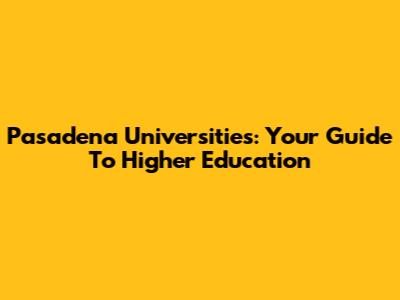 Pasadena Universities: Your Guide To Higher Education