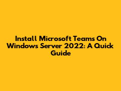 Install Microsoft Teams On Windows Server 2022: A Quick Guide