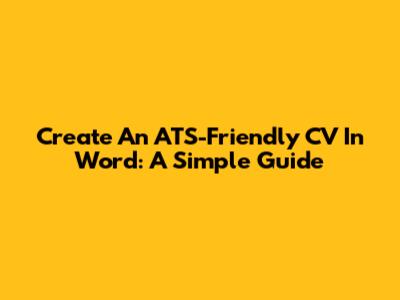 Create An ATS-Friendly CV In Word: A Simple Guide