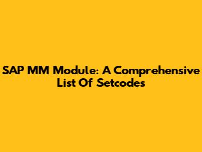 SAP MM Module: A Comprehensive List Of Setcodes