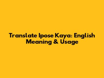 Translate 'Ipose Kaya': English Meaning & Usage